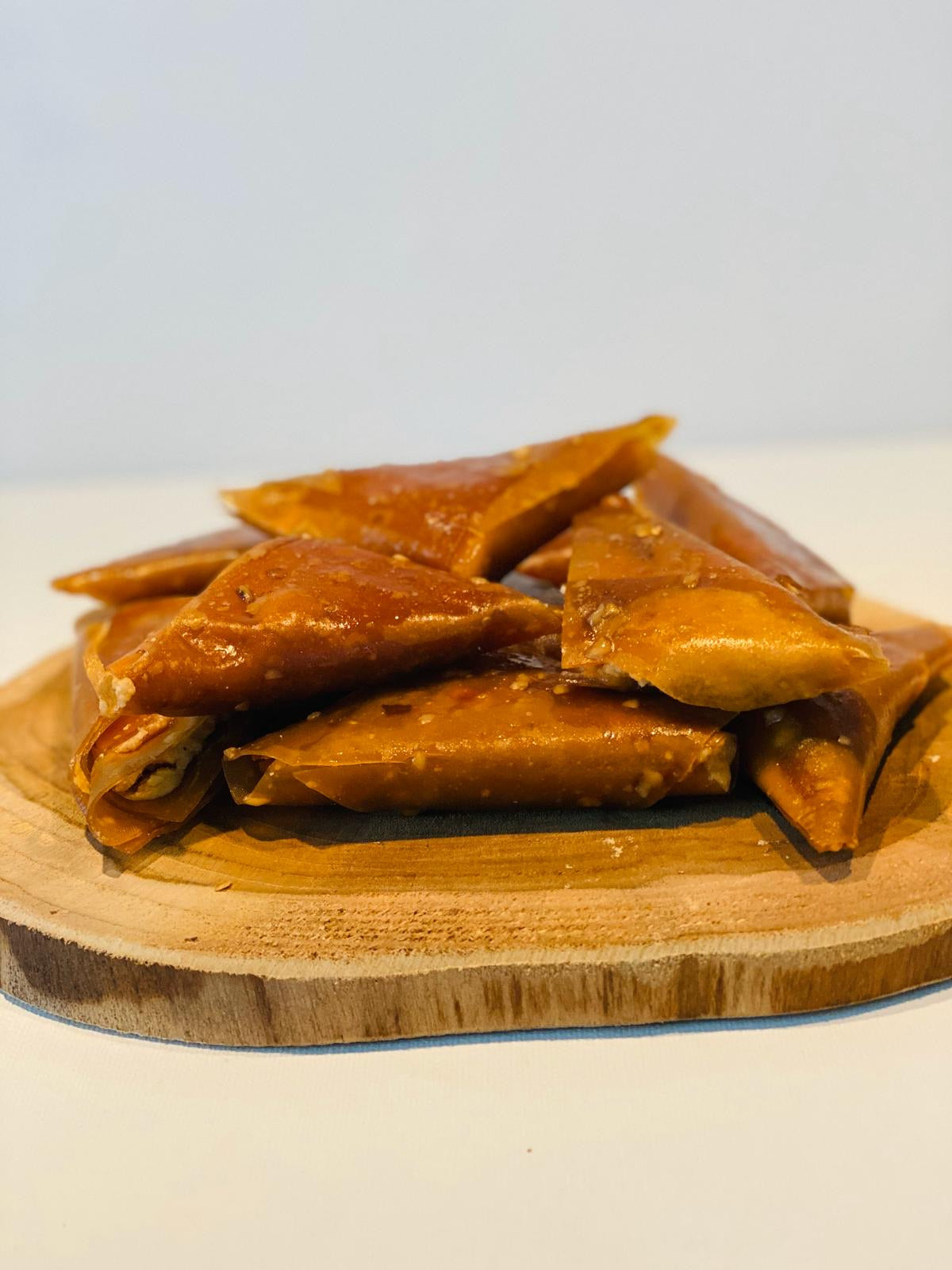 Das Pistazien-Dreieckspestil wird in Form eines Amuletts zubereitet, indem pulverisierte Pistazien in 500 Gramm Traubenpestile gegeben werden.
