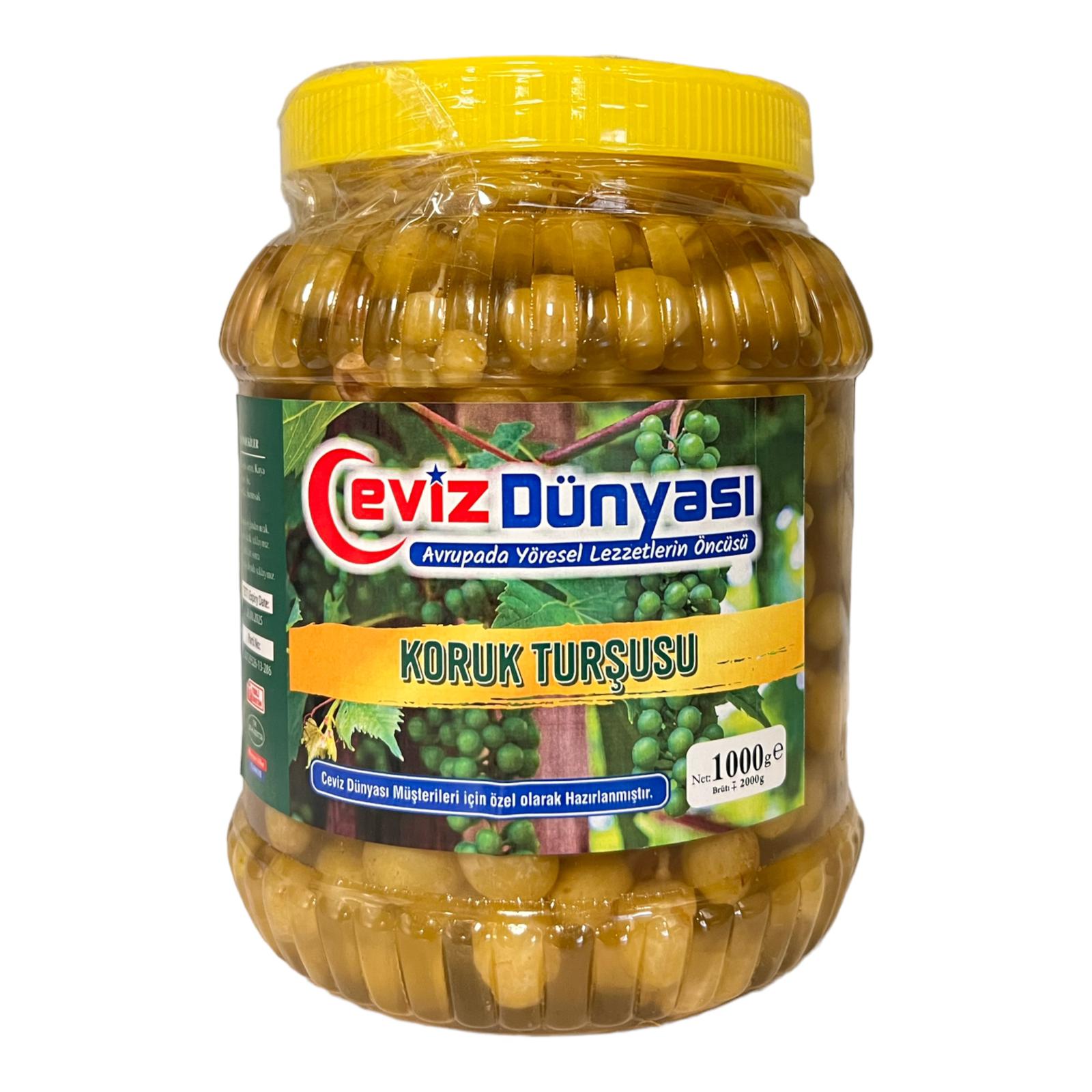 Diese spezielle Gurke, die aus den berühmten Antep-Gurken zubereitet wird, hinterlässt einen unvergesslichen Geschmack auf dem Gaumen. Das Antep Koruk Pickle wird durch sorgfältige Auswahl von noch nicht ganz reifen Traubenkernen hergestellt und durch einen natürlichen Gärungsprozess zubereitet.